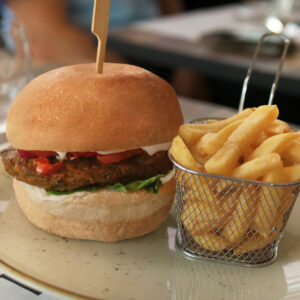 cheddar, pomodoro, insalata iceberg accompagnato da patatine fritte* (all. 1,7)